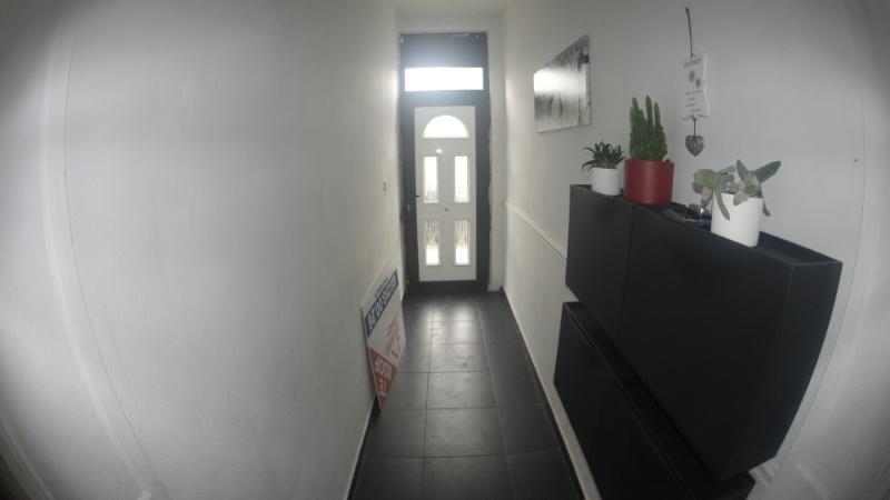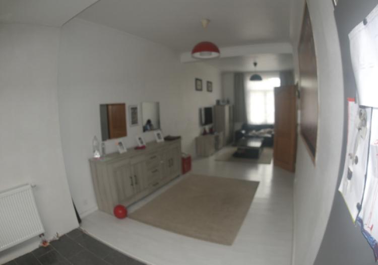 Op het gelijkvloers heb je inkomhal, woonkamer, open keuken, wc, berging en een koer. De keukenkast is ingebouwd met kookplaat, damp kap, micro golf, oven en vaatwasser.